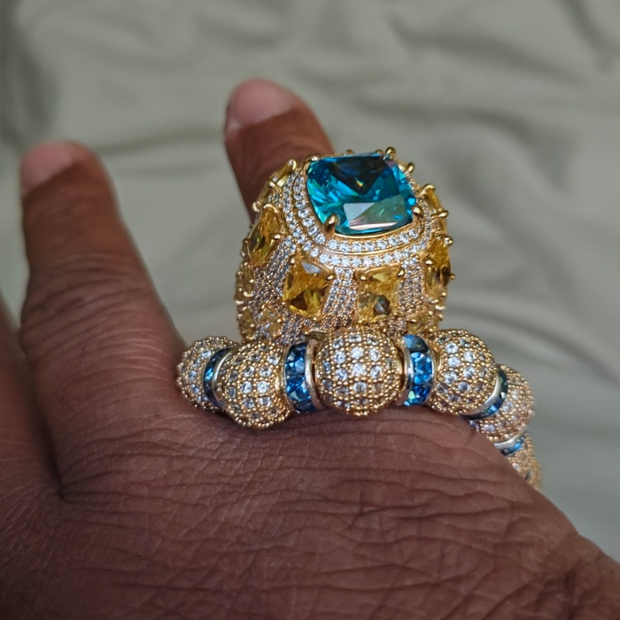 10ct cushion cut sapphire and yellow Zircon inlay luxury sterling silver plated yellow gold Zircon men's ring